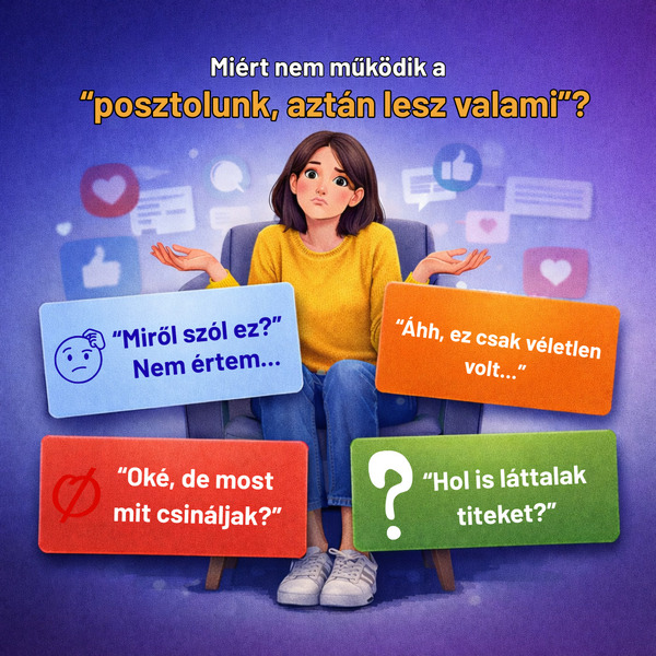 A másik gond, hogy a posztolás sokszor a cég szemszögéből történik, nem a vevőéből. Te tudod, mi a szolgáltatásod, mit csináltatok a héten, milyen új csomag van, de a felhasználó fejében ez nem így áll össze. Ő azt figyeli, hogy róla szól-e, megold-e egy helyzetet, ad-e választ egy kérdésre, vagy segít-e dönteni. Ha nem találja meg gyorsan, mi köze neki hozzá, továbbgörget — és nem azért, mert nem érdekelné, hanem mert nincs meg a “miért most?” érzés.